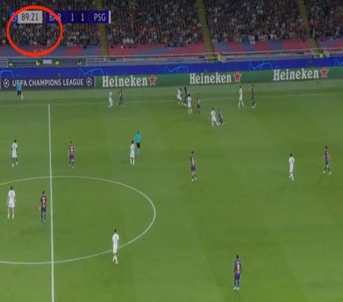 此后長(zhǎng)達(dá)50分鐘的時(shí)間里,兩隊(duì)都無(wú)法再次破門(mén)。第89分鐘,巴薩后場(chǎng)控球。此刻,巴黎開(kāi)始全場(chǎng)逼搶。89分鐘20秒,巴黎成功斷球。巴黎球員并不著急反擊,他們將球回傳。