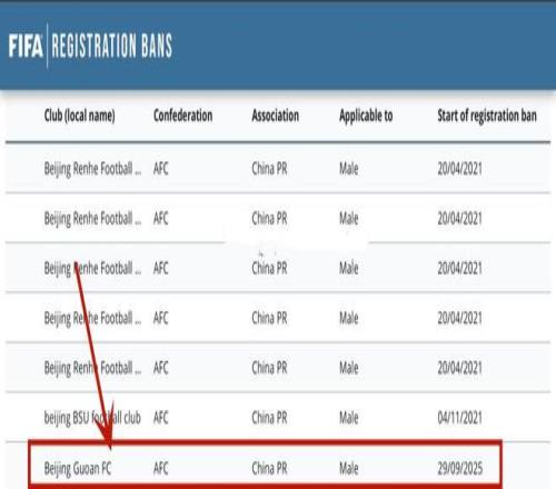 FIFA官方傳來消息,北京國安收到一則轉(zhuǎn)會(huì)注冊的禁令,處罰期無限期,一直到問題解決,才可能解除轉(zhuǎn)會(huì)禁令。在此期間,不得操作國際、國內(nèi)的轉(zhuǎn)會(huì),以及注冊新的球員。