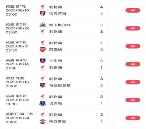 在此前英超第一輪到英聯(lián)杯的比賽中,利物浦連續(xù)六場(chǎng)比賽都是完成絕殺致勝的一方。