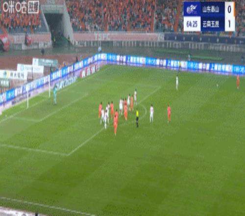 第66分鐘,泰山定位球進攻,李小恒頭球破門,泰山1-1扳平比分!