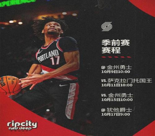 本月9日,開拓者就迎來今年季前賽的首戰(zhàn),客場VS勇士;10月11日,主場VS國王;10月15日,主場VS勇士;10月17日,客場VS爵士。
