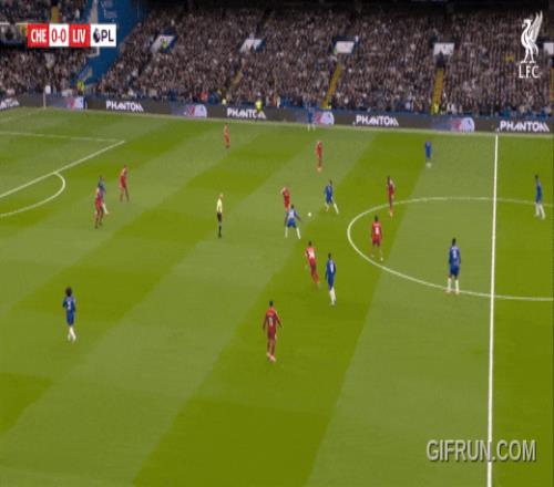 切爾西第一球,就是格拉文貝赫防恩佐,照顧切爾西左路,利物浦中路索博一對二,凱塞多前插進(jìn)球。