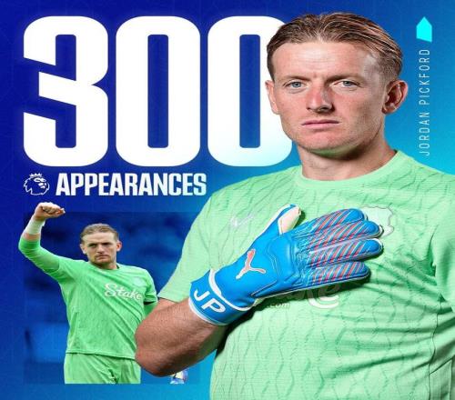 里程碑,皮克福德迎來埃弗頓生涯英超第300次出場(chǎng)