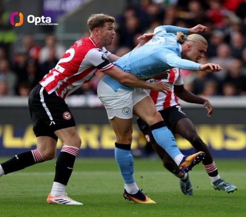 此役客場對陣布倫特福德,首發(fā)出戰(zhàn)的哈蘭德在比賽第9分鐘破門,這是哈蘭德英超生涯首次在布倫特福德社區(qū)球場取得進(jìn)球。