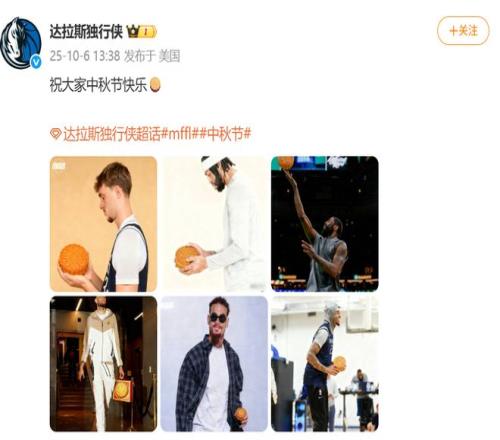 三狀元出鏡!達(dá)拉斯獨(dú)行俠更新社媒:祝大家中秋節(jié)快樂