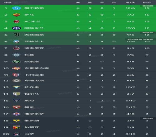 隨著那不勒斯21逆轉(zhuǎn),尤文00悶平,意甲第6輪最新積分榜如下!