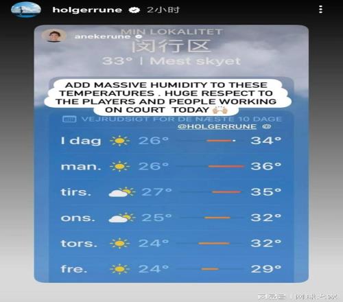 看到魯內(nèi)這場(chǎng)比賽贏得非常不容易,很多人都認(rèn)為賽后他肯定會(huì)迅速休息,沒(méi)想到他的一句話,讓上海高溫天氣再次受到熱議的同時(shí),也將ATP推向了輿論風(fēng)口浪尖。