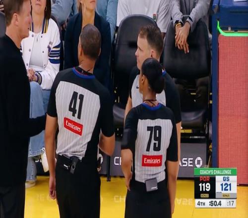但奇怪的是,離楊瀚森僅有不到兩米之遙的底線裁判,并沒(méi)有做出任何表示。反倒是距離相對(duì)較遠(yuǎn)的裁判認(rèn)為腳步有問(wèn)題。