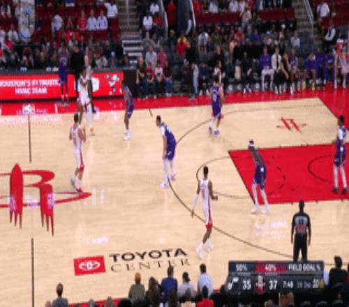 第二節(jié)火箭憑借上半場最后階段的一波反擊攻勢取得領(lǐng)先,單節(jié)44-36凈勝8分,這一節(jié)杜蘭特單挑扛著貝利打進(jìn)招牌后仰中投,之后造貝利犯規(guī)并且兩罰全中,杜蘭特還強(qiáng)硬突破殺到禁區(qū),上演不可思議的雙手炸扣,如此暴扣瞬間點燃球館。