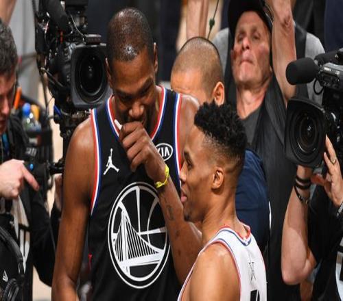 杜蘭特與威斯布魯克曾在俄克拉荷馬城雷霆共同效力八個賽季,兩人攜手打進(jìn)2011-12賽季NBA總決賽。威少在2019年短暫效力于火箭,之后輾轉(zhuǎn)華盛頓奇才、洛杉磯快船和洛杉磯湖人,并于2024年7月簽約掘金。