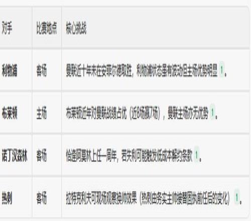 未來幾周,曼聯(lián)將連續(xù)對陣?yán)锲郑蛨觯?、布萊頓(主場)、諾丁漢森林(客場)和熱刺(客場),其中三場為客場作戰(zhàn)。
