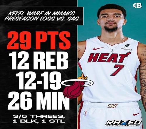 熱火季前賽107-112不敵馬刺-4,吞下三連敗,但南灘球迷卻仿佛提前收到了最好的新年禮物——二年級(jí)中鋒克萊爾·韋爾用一場(chǎng)震驚四座的表演,讓整個(gè)NBA開始重新審視這支球隊(duì)的潛力。