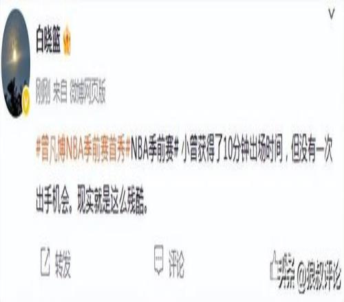 曾凡博NBA首秀0分1搶斷引熱議媒體人吐槽10分鐘0出手盡顯“殘酷”