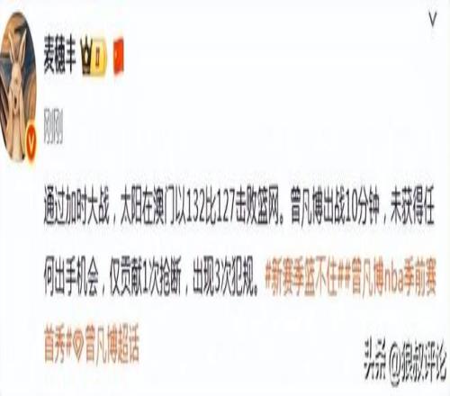 北京記者勇方方發(fā)文點(diǎn)評(píng):如果你是一個(gè)沒(méi)看過(guò)CBA的籃網(wǎng)球迷,看完這場(chǎng)比賽,你根本沒(méi)法判斷ZENG到底水平如何。