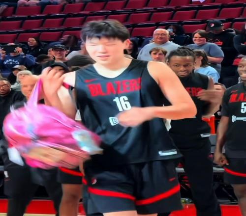 你有沒有發(fā)現(xiàn),最近楊瀚森總是背著一個粉紅色的書包出現(xiàn)在鏡頭中。甚至當訓練賽開場前,別的隊友都在后面排隊,只有楊瀚森背著粉紅色的書包,在跟啦啦隊學跳舞。