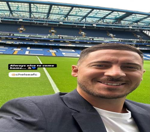 賽前,阿扎爾在社交媒體曬出他在斯坦福橋的自拍照,并配文:“回家總是很美好”