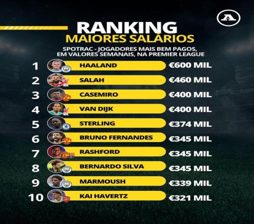 北京時(shí)間10月13日,《球報(bào)》列出了英超目前周薪最高的前十位球員,哈蘭德60萬(wàn)歐元居首,薩拉赫、卡塞米羅緊隨其后。