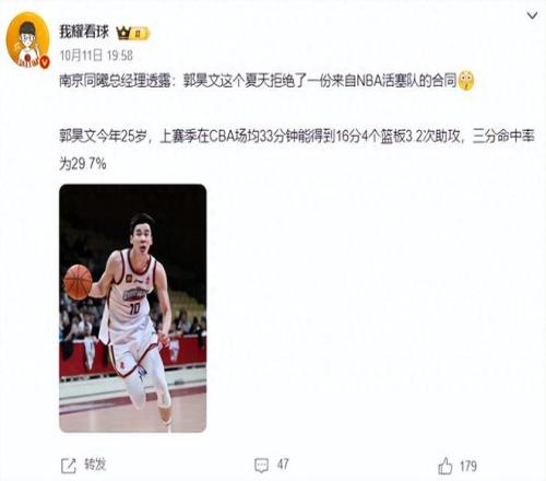 但是,有一名球員卻拒絕了NBA合同,那就是郭昊文!據(jù)南京同曦總經(jīng)理透露,郭昊文這個(gè)夏天拒絕了一份來(lái)自NBA活塞隊(duì)的合同。