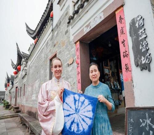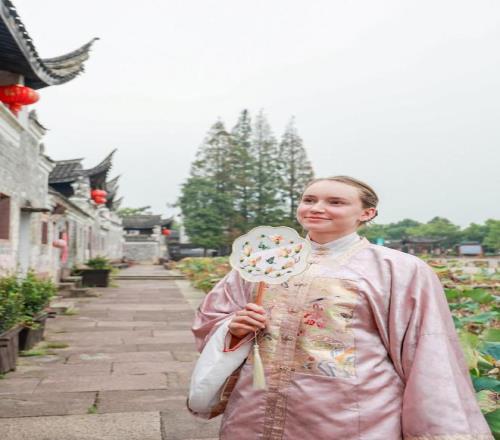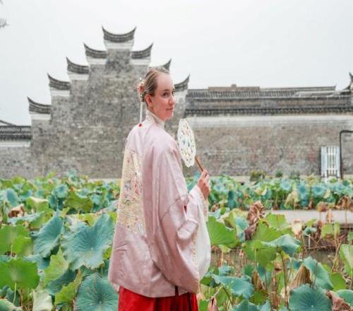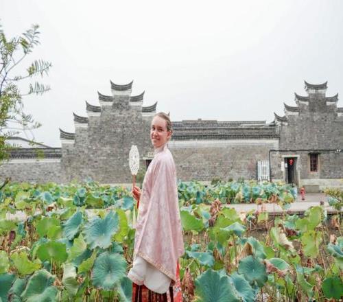 一顰一笑皆風(fēng)景,萊巴金娜身穿漢服漫步寧波走馬塘村