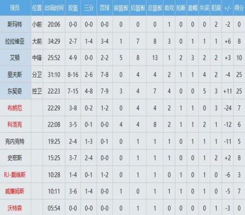 湖人全隊(duì)數(shù)據(jù)如下: