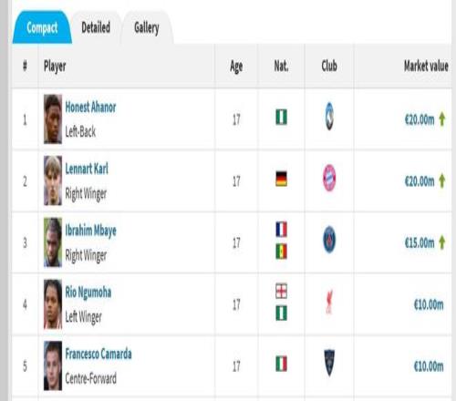 10月14日,德國轉會市場網站更新了本期德甲聯(lián)賽球員的身價,17歲拜仁小將倫納特-卡爾的身價從150萬歐元暴漲至2000萬歐元,漲幅高達1233.3%,成為2008年出生球員中身價并列最高的一位。另一位達到2000萬歐元的該年齡段球員是亞特蘭大隊小將阿哈諾爾。
