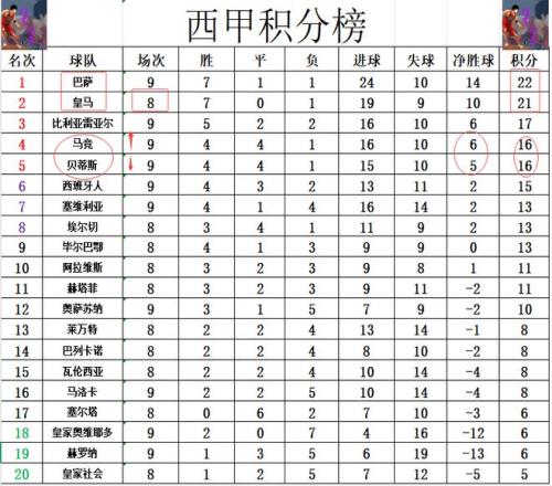 西甲最新積分戰(zhàn)報巴薩壓哨絕殺超皇馬登頂馬競8輪不敗擠入前4
