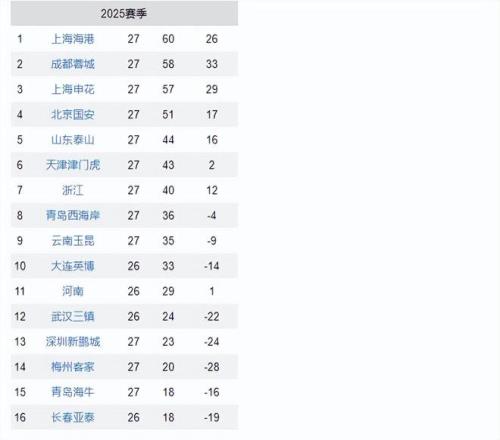 隨著玉昆20,泰山22,國安爆冷,中超最新積分榜出爐:降級(jí)3選2