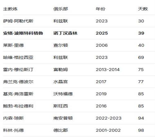 39天,0勝,20個失球,聯(lián)賽第17位的陰影……這些冰冷的數(shù)據(jù)宣告了森林隊史上最短命主帥的誕生。