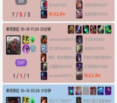體育資訊10月19日?qǐng)?bào)道宣稱 BLG上單Bin自14號(hào)凌晨后在今天再度開啟韓服Rank,使用一把挖掘機(jī)(7-5-3),一把狼母(1-1-1),兩把全負(fù)。