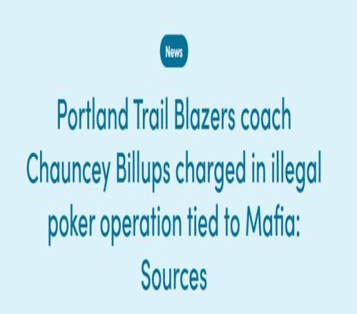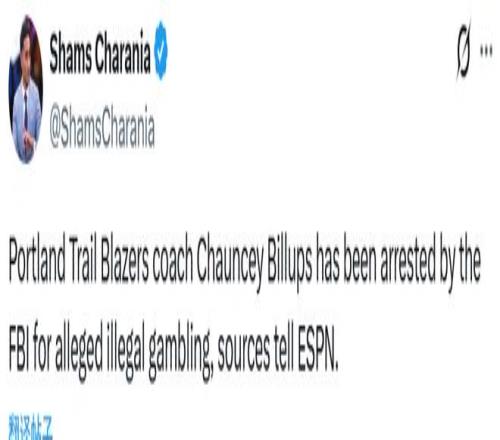 北京時間10月23日,據(jù)名記Shams報道,ESPN消息人士透露,波特蘭開拓者隊教練昌西·比盧普斯因涉嫌非法賭博被聯(lián)邦調(diào)查局逮捕。兩名高級執(zhí)法官員表示,該調(diào)查與他執(zhí)教的比賽無關(guān)。美媒GMA跟進報道,比盧普斯被捕是因其涉及與黑手黨有關(guān)的非法撲克活動被起訴。消息人士稱,比盧普斯在俄勒岡州被捕,預(yù)計他將于明日首次出庭。