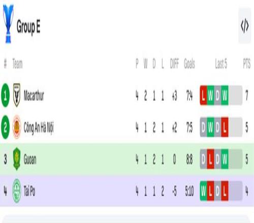 本輪戰(zhàn)罷,國安1勝2平1負(fù)超越和富大埔,擺脫墊底,與河內(nèi)公安同分,因為凈勝球的劣勢暫時排名第三。