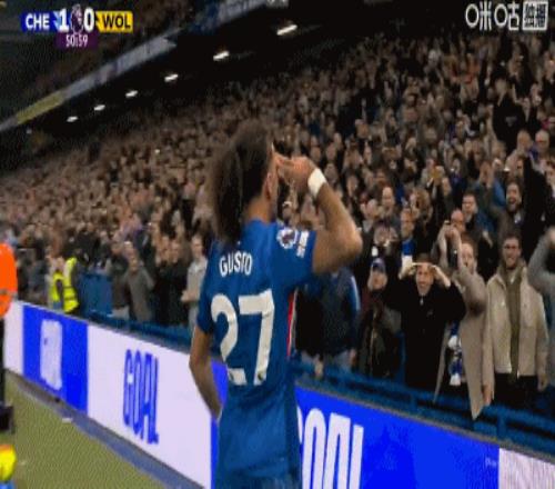 第51分鐘,加納喬助攻,古斯托頭球破門攻入藍(lán)軍生涯首球,切爾西1-0