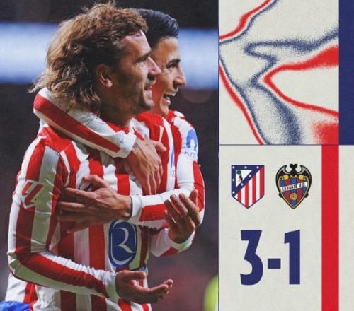主場面對萊萬特,馬競上半場開局不錯,依靠一個烏龍球先下一城,隨后馬努-桑切斯頭球破舊主,比分1-1扳平。下半場,替補(bǔ)出戰(zhàn)的格列茲曼短短19分鐘完成梅開二度,幫助馬競3-1再度領(lǐng)先,這個比分也保持到比賽結(jié)束。據(jù)統(tǒng)計,格列茲曼已在西甲聯(lián)賽打進(jìn)201球,成為歷史第11人。