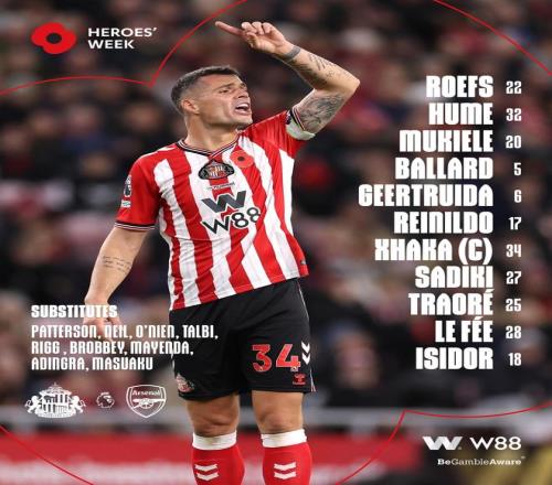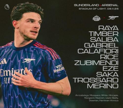 阿森納客戰(zhàn)桑德蘭:扎卡戰(zhàn)舊主,薩卡、埃澤、梅里諾首發(fā)
