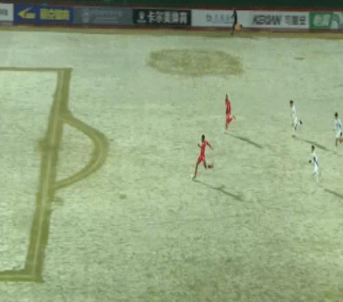 第52分鐘,李冠希出現(xiàn)超級巨大失誤,羅薩吊射得分,廣州豹1-0領(lǐng)先!