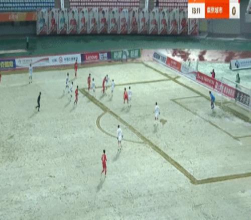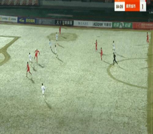 第45+2分鐘,中場任意球直接吊向禁區(qū),盧佩塔破門扳平比分,南京城市1-1!