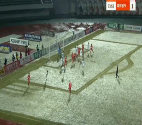 第59分鐘,尼康送出一記精準長傳球找到姜積弘,后者頭球破門,廣州豹2-1再次領(lǐng)先!