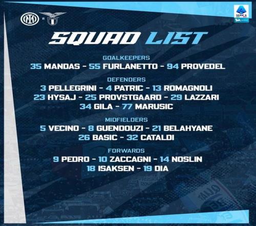 拉齊奧公布戰(zhàn)國米名單:扎卡尼、佩德羅在列,6名球員缺陣