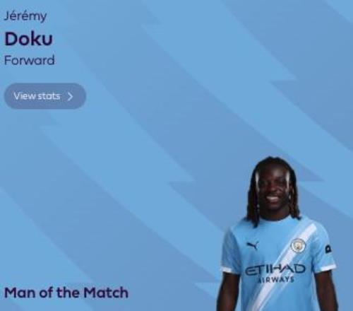 此役主場對陣?yán)锲?,首發(fā)出戰(zhàn)的多庫在下半場第63分鐘打入一球,幫助曼城3-0大勝對手。