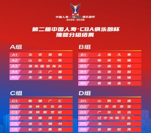 CBA俱樂部杯賽賽區(qū)抽簽出爐:A組長沙少1隊D組武漢遼粵大戰(zhàn)