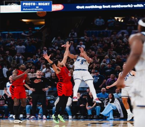 魔術(shù)與開拓者的比賽進行到最后1.9秒,雙方打成112比112平,握有最后機會的魔術(shù)執(zhí)行邊線發(fā)球。裁判哨響之后,卡特第一時間沖向貝恩為其設(shè)立掩護。盡管開拓者果斷完成換防,但是貝恩依然憑借著個人能力,頂著防守命中高難度三分,完成壓哨絕殺。根據(jù)數(shù)據(jù)統(tǒng)計,這記三分的出手點距離籃筐8.23米,這也是魔術(shù)隊歷史上最遠的壓哨絕殺。